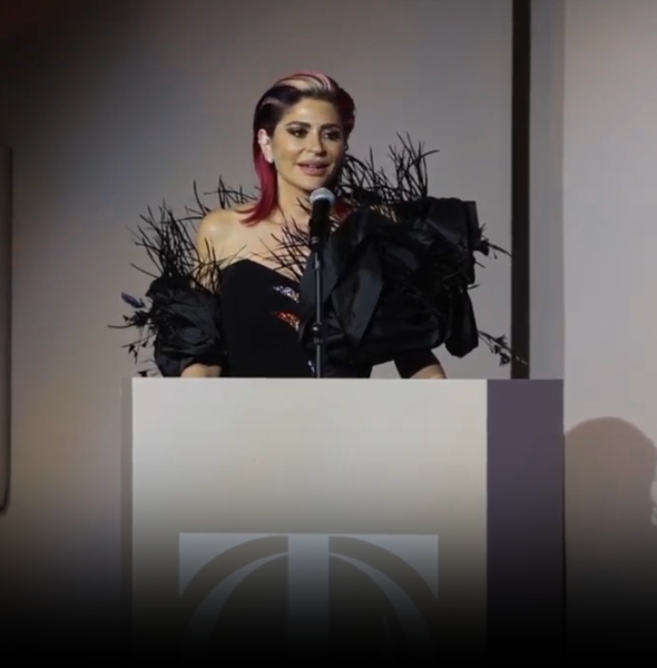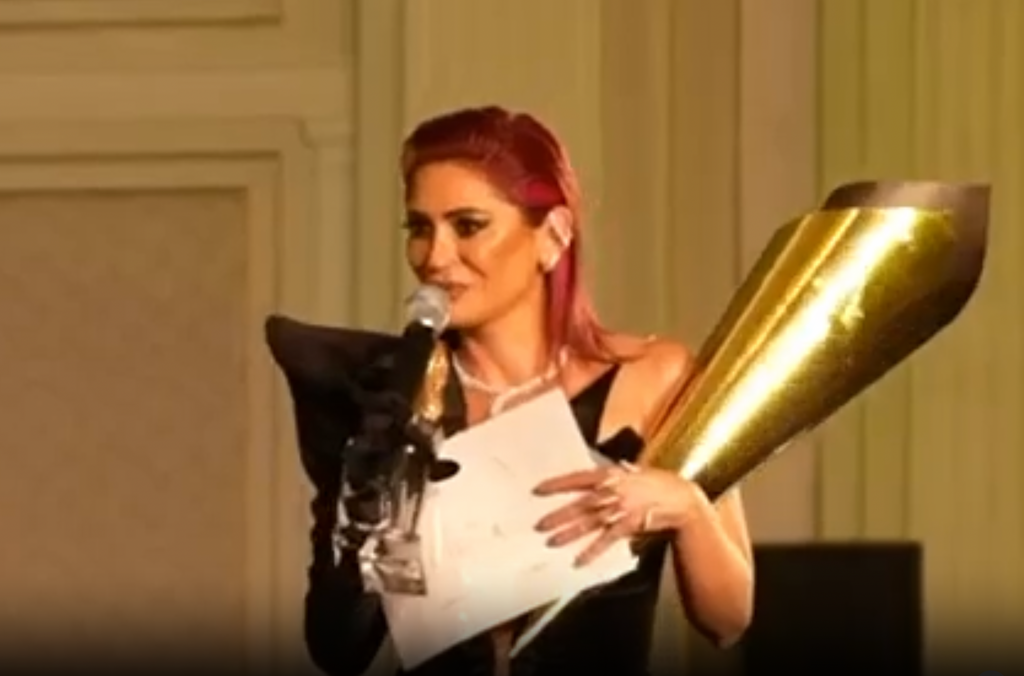 YEPREM Creative Director and Managing Partner Virna Chakardemian accepts the “Jewelry Brand of the Year” award at DJFW 2023