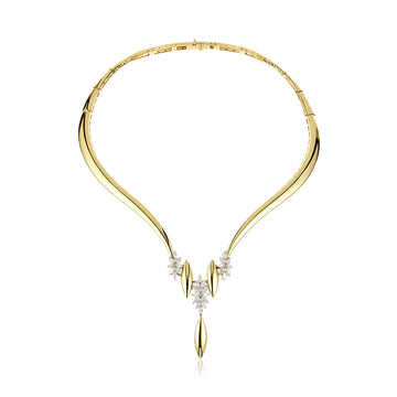 YEPREM statement necklace adorned with a combination of round and marquise diamonds boasting exceptional clarity of VVS and VS, as well as a striking F-G color.