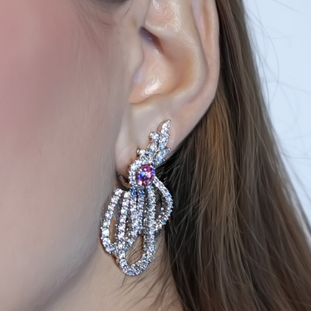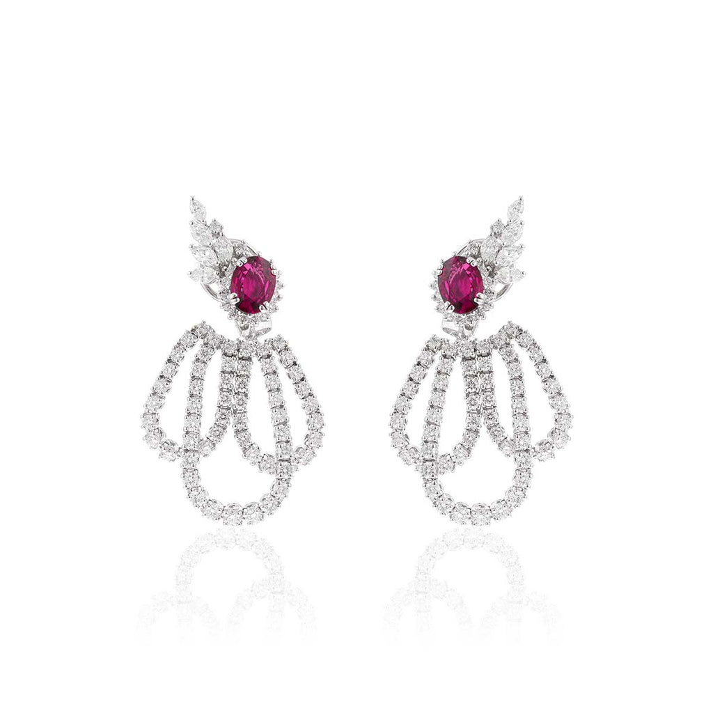 YEPREM drop earrings adorned with a combination of round and marquise diamonds boasting exceptional clarity of VVS and VS, as well as a striking F-G color, accentuating the sapphire stone.