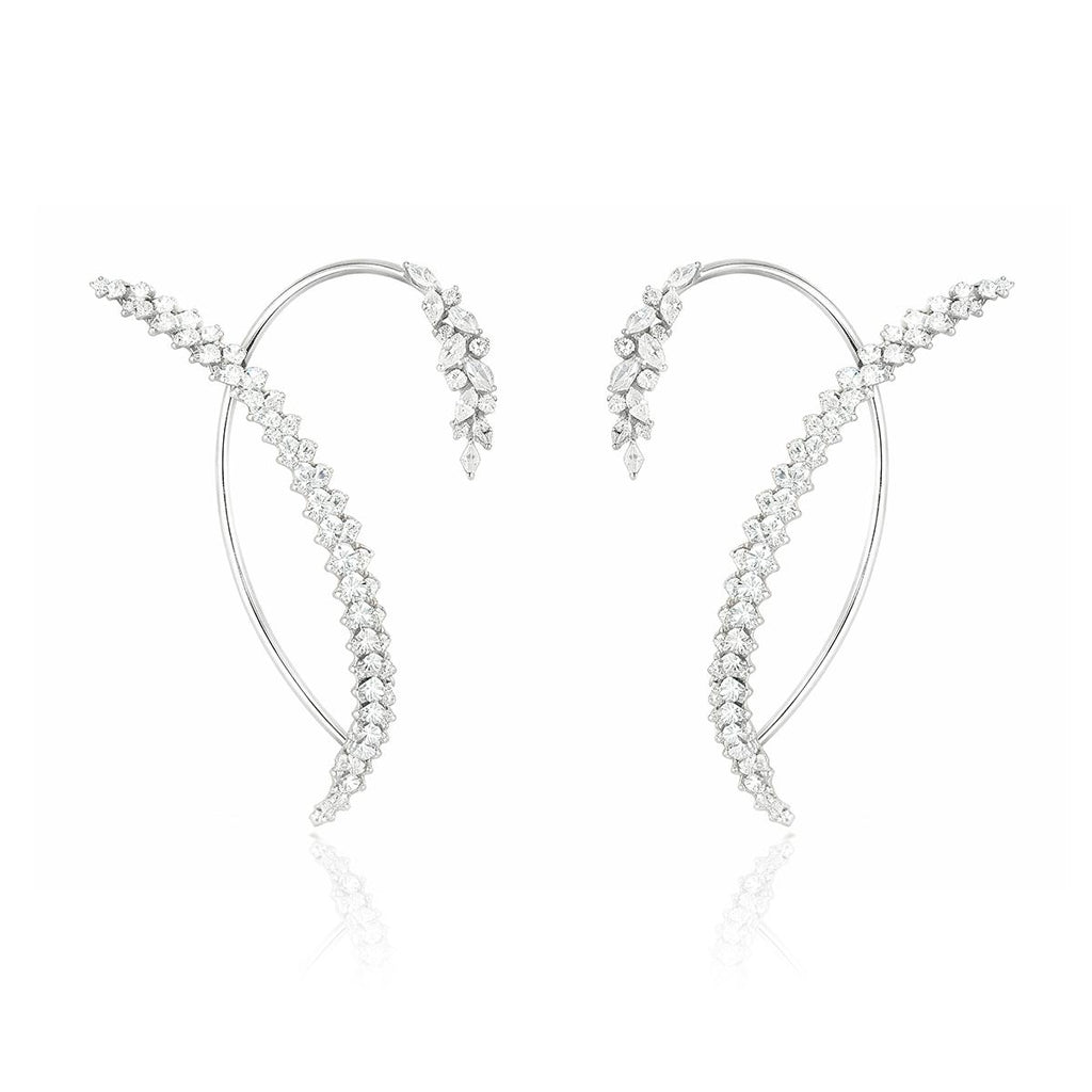 YEPREM drop earrings adorned with a combination of round and marquise diamonds, boasting exceptional clarity of VVS and VS, as well as a striking F-G color.