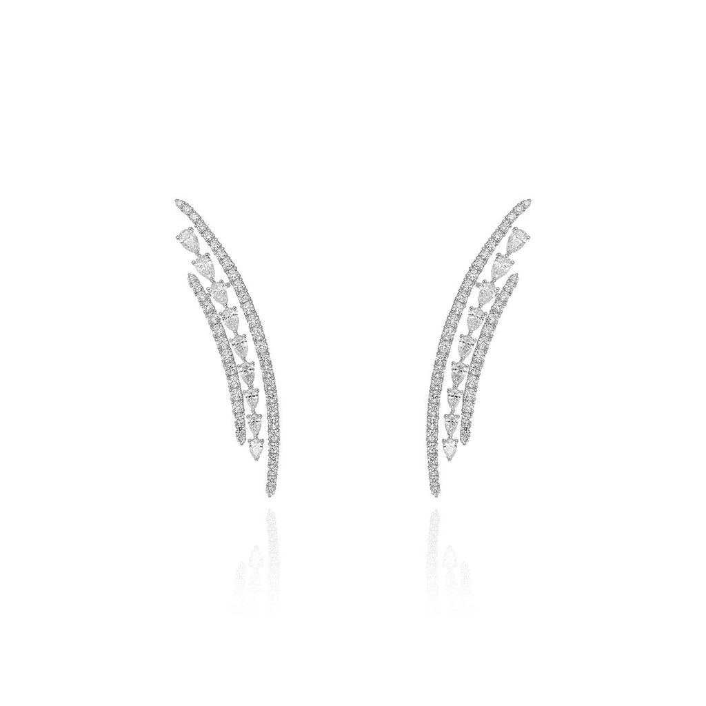 YEPREM drop earrings adorned with a combination of round, pear and diamonds, boasting exceptional clarity of VVS and VS, as well as a striking F-G color.