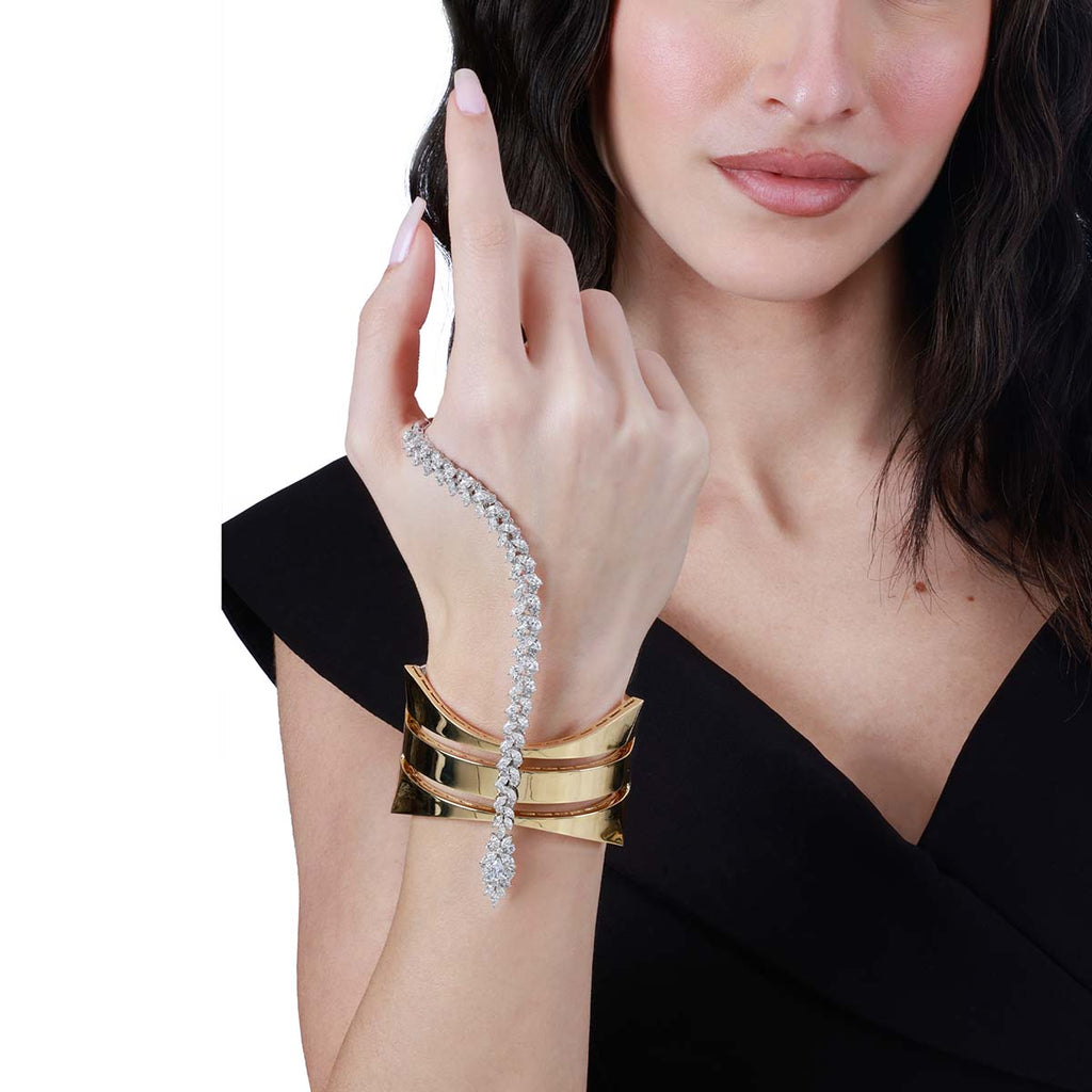 YEPREM handpiece adorned with both round and marquise diamonds boasting exceptional clarity of VVS and VS, as well as a striking F-G color.
