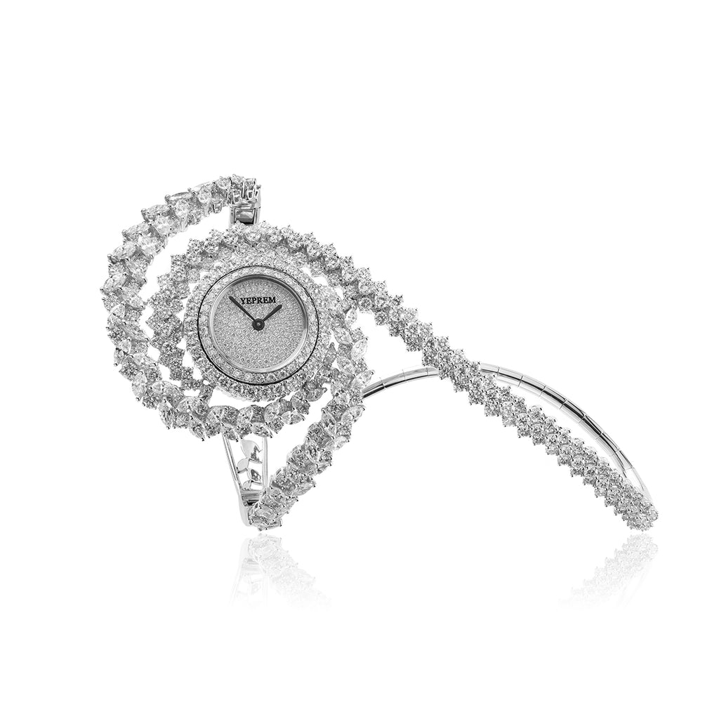 YEPREM watch adorned with a combination of round and marquise diamonds boasting exceptional clarity of VVS and VS, as well as a striking F-G color.