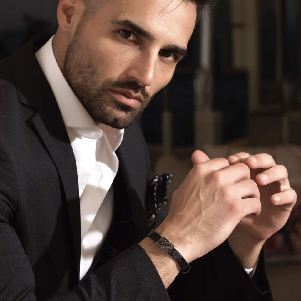 YEPREM HIM single wrap leather bracelet adorned with black diamonds boasting exceptional clarity of VVS and VS, as well as a striking F-G color.
